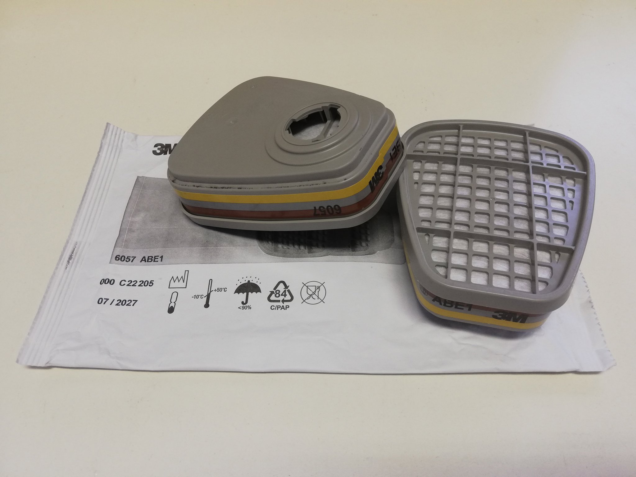 - Schutz gegen: Organische Dämpfe (A), Anorganische Gase (B) und Saure Gase (E) – ABE-Klasse