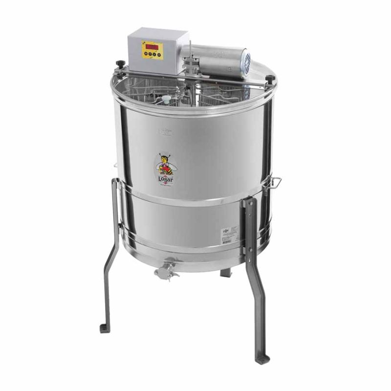 Ein wichtiger Vorteil dieser Logar-Honigschleuder ist die große Korbkapazität trotz vergleichsweise kleinem Kesseldurchmesser von 63 cm. Die vollautomatische Steuerung erlaubt das eigenständige Ausführen des kompletten Schleuderprozesses; die Bedienung erfolgt bequem über eine Folientastatur. Sie können bis zu 8 Programme mit jeweils bis zu 8 Zeiten, Richtungen und Drehgeschwindigkeiten einstellen und speichern. Grundprogramme sind voreingestellt und können jederzeit angepasst werden.